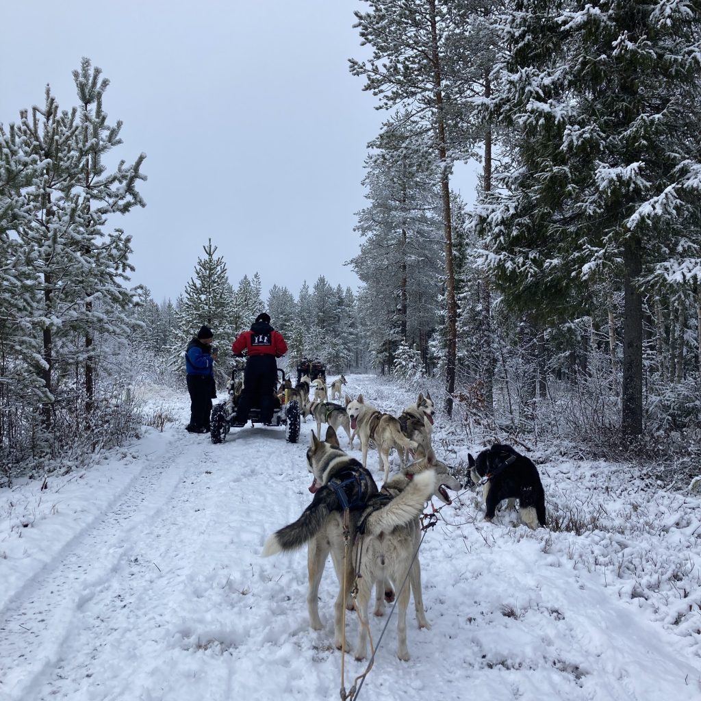When I arrived, I travelled with four strangers on a husky safari tour, something that had been on my bucket list for a long time. We were required to wear thermal suits as the temperatures outside were below freezing. The seven-seater van was small, and the heating was on full blast. As condensation covered the windows, I felt claustrophobic. After an hour and twenty minutes of tummy flips and sweating profusely, we reached our destination.