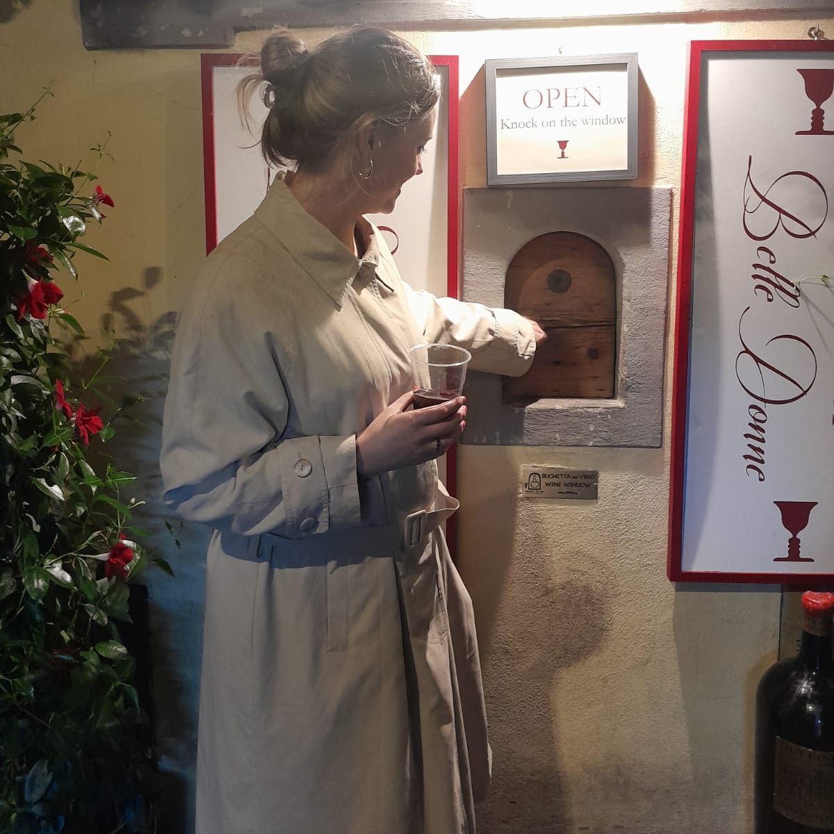 You just definitely visit some of the wine windows that are scattered around the city. They are so cool, and you can have your glass of wine on the go!
